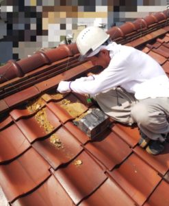 今日は屋根補修工事現場です。漆喰外し→棟瓦ラバー打ち。M.T