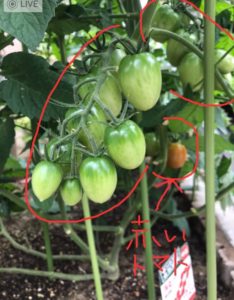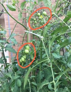 トマトが少しだけ赤くなり始めました(嬉)