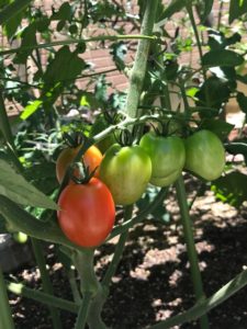本日、ひとつだけですが今年初のトマト収穫です。大きく真っ赤に育ちました。