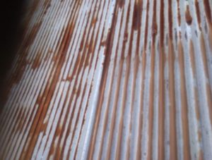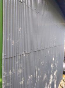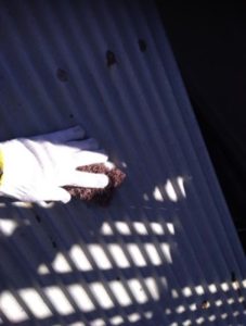 小屋の屋根、壁、ケレン・サビ止め工事中。H.N